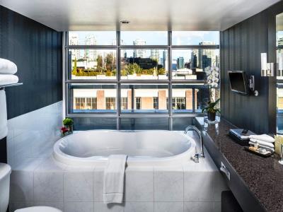 This 4 star hotel is located in the city centre of Vancouver and was established in 2002. It is a short drive away from the Granville Island and the nearest station is Yaletown/Roundhouse. The Hotel has a coffee shop and a fitness centre/gym. All 96 rooms are equipped with minibar, hairdryer, safe, trouser press, ironing set and air conditioning.