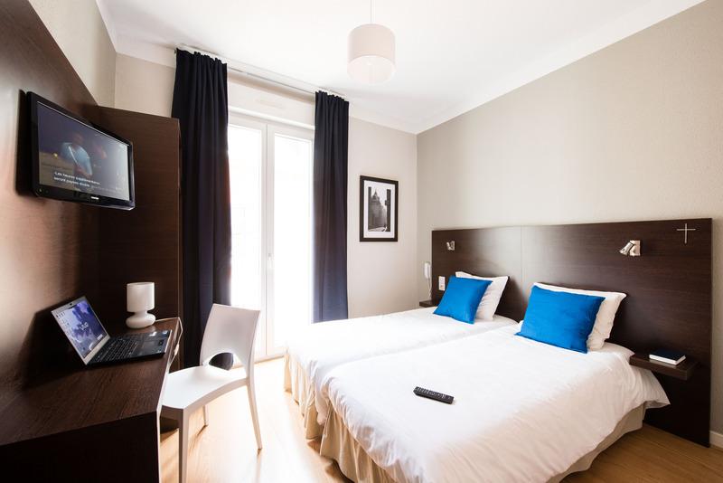 The city hotel is located in central Lourdes in a very calm and quiet neighbourhood. The sanctuary and the grotte are a 6-minute walk from the eco hotel. The train station is approximately 2 km from the historical hotel and the lake is a 5-minute drive. Tarbes Ossun Lourdes airport is around 12 km from the hotel, Pau airport is 45 km away and Toulouse-Blagnac airport is roughly 180 km away.Built in 1930 and renovated in 2010, the air-conditioned hotel has its own private car park and garage (fees apply) for cars and buses. Guests are offers free WLAN Internet access, a TV lounge, a cafe, bar, restaurant and lift access. The eco hotel additionally features a lobby with a hotel safe and a laundry service for a fee.The hotel offers rooms with 2 or 3 single beds, or with twin or double beds. All rooms feature an en suite bathroom with a shower, a direct dial telephone, TV, Internet access and individually regulated heating.