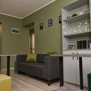 The rest area for guests is equipped with a refrigerator, microwave, tables and chairs, a comfortable sofa and poufs, TV and Wi-Fi.