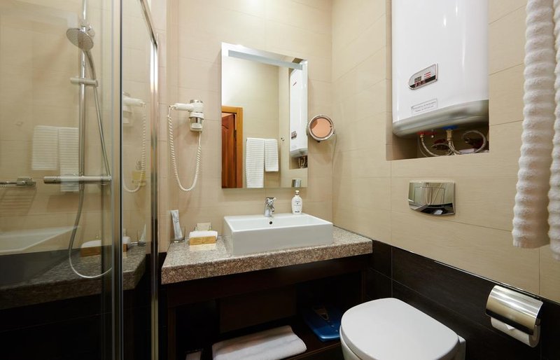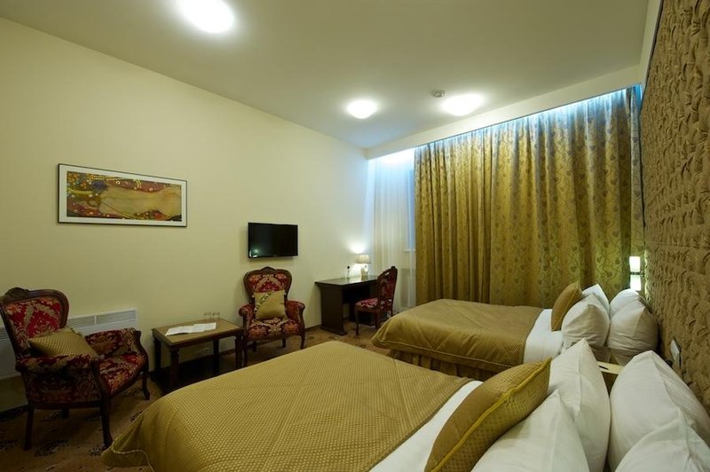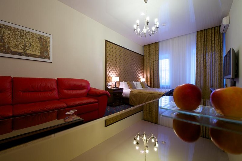 The hotel offers 38 rooms of different categories. All rooms are equipped with TV-sets, stereo systems, telephones, safe deposit boxes, air-conditioners, floor heating, hair-dryers, minibars, Internet access. Bathrobes, slippers, and bath essentials are also available. Every morning guests are offered breakfast.