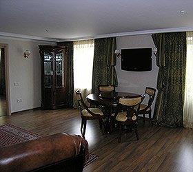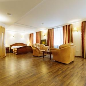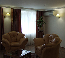The hotel offers 109 rooms of different categories - from economy class to luxury range. In rooms: TV, telephone, refrigerator, hairdryer, air conditioning, electric kettle, slippers, bathrobe, wireless Internet access, in some rooms - safes, built in furniture.