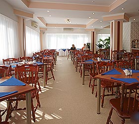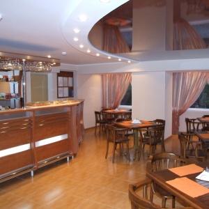 On the territory of the hotel there is a cafe, on the ground floor is banquet hall for 30 seats, on the second floor is dining room for 80 seats. There is a cafeteria with 20 seats in the building №2. It offers European cuisine, breakfast.