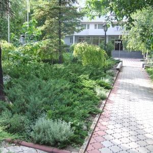 On the territory of the hotel complex with an area of 1.7 hectares there are 2 sleeping buildings, cafe, parking lot. The territory is closed and guarded. In the park area of the hotel there are about 400 copies of green spaces, 47 species and 5 rare species of garden forms.