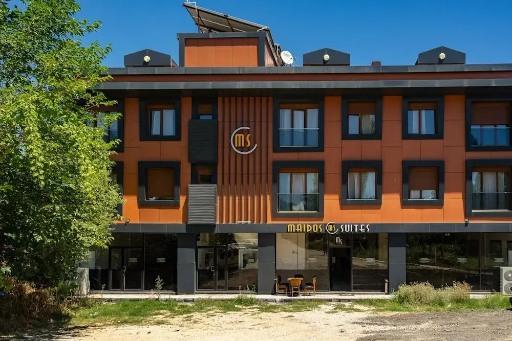 Подходящий вариант для бюджетного отдыха — отель «Maidos Suites» находится в Эджеабате. Этот отель расположен в центре города. Утром — выпейте кофе, наблюдая из окна за жизнью города.