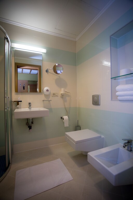 In the room, there is a TV, a mini-bar, a bathrobe and slippers. The room equipment depends on its category.