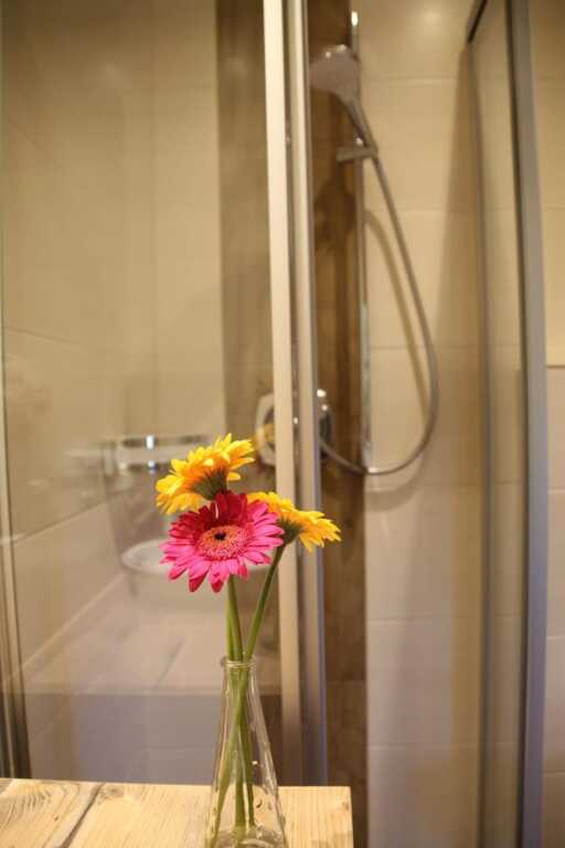The room is warmly decorated and has everything you need to have a rest after a long eventful day. There is a shower and a TV. The room equipment depends on its category.