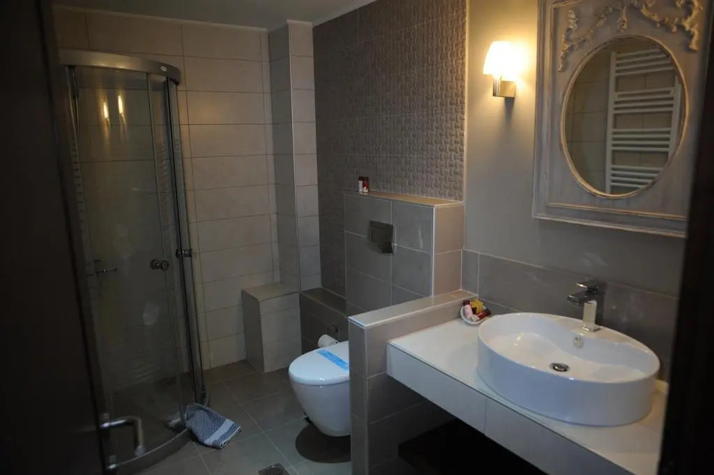In the room, there is a shower, a TV, a bathrobe and slippers. The room equipment depends on its category.
