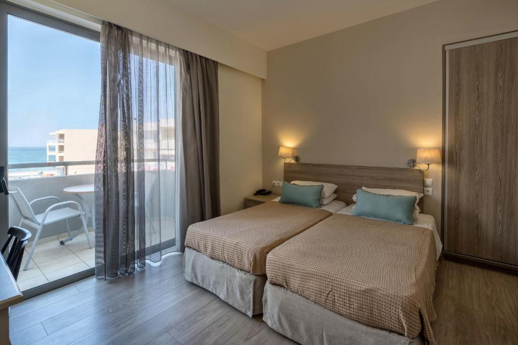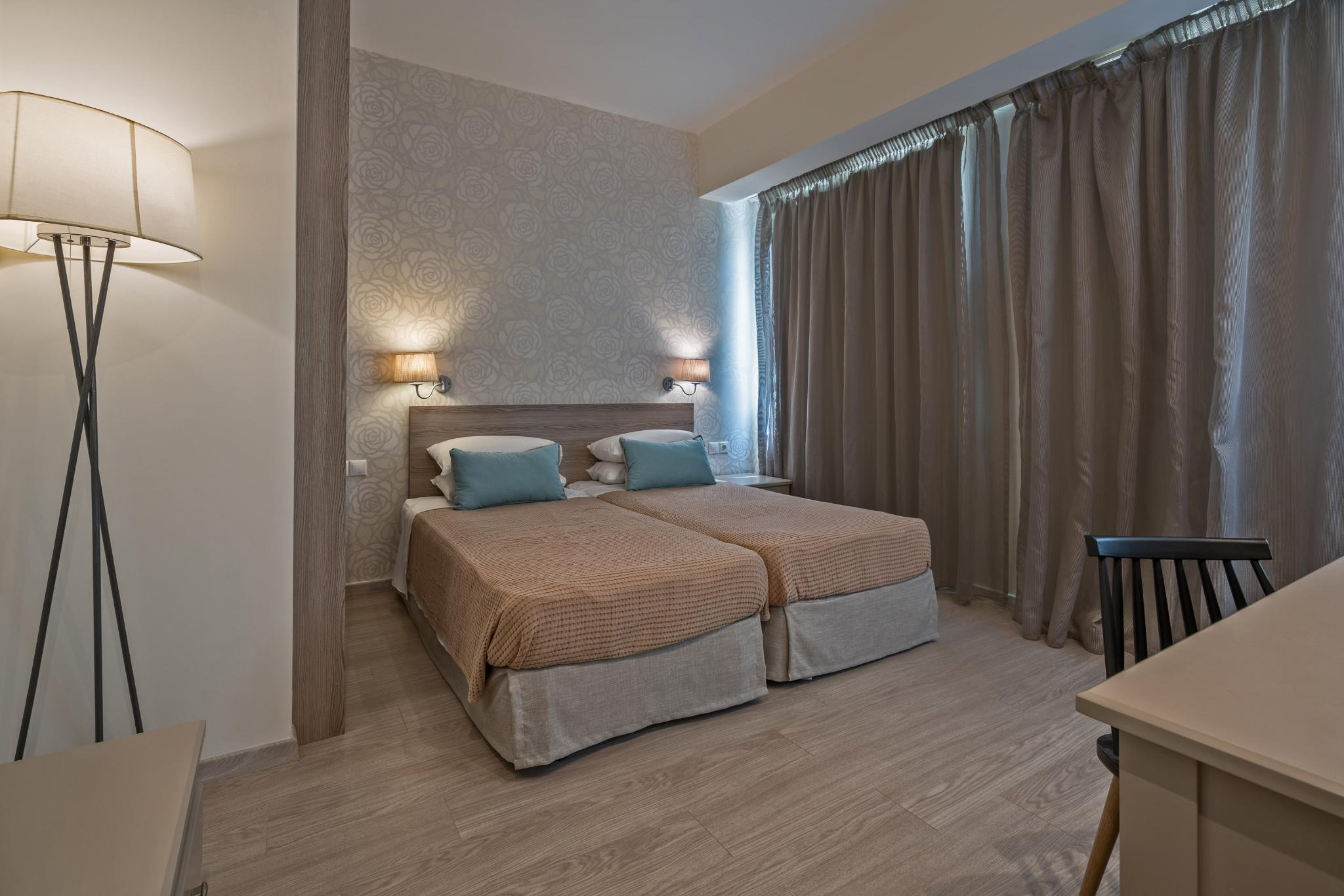 This establishment is situated just 50 metres from the nearest beach, for visitors to enjoy the sun or a refreshing swim, the hotel is amidst a green and spacious garden and combines traditional Greek hospitality. The old town can be found at around 800 metres away, where visitors can enjoy a nice stroll around lots of little quaint shops with lots of architecture to explore, including the Venetian Harbour which attracts many visitors due to its popular restaurants and tavernas. Facilities in the hotel include a pool for guests to enjoy a leisurely swim, or lie by the pool with a refreshing drink from the hotel bar. The hotel also features a professional conference room for any business travellers, a spacious and welcoming lounge and a classic and relaxed dining area. All the brightly lit and spacious rooms, include comfortable beds and a private bathroom with shower. All are thoughtfully designed and beautifully finished to ensure guests enjoy perfect comfort and convenience during their stay.