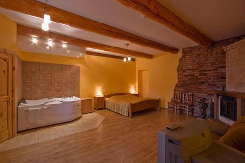 Spend an evening in a nice atmosphere of the bar. Free Wi-Fi is available on the territory. Ask for more information when checking in. Specially for tourists who travel by car, there’s a free parking zone. The beauty and wellness services: a sauna..You won’t be bored as at the guest house you will find a barbeque area. Swimming fans are going to enjoy a pool and an indoor pool. Take your pet with you. Pets are allowed. The staff of the guest house speaks English.