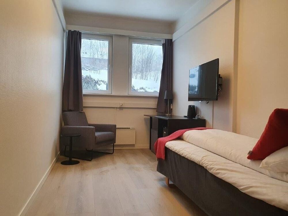 It’s nice to come back to a place where you can have a rest after an eventful day in the city Hotel «Hurtigrutens Hus» is located in Stokmarknes. This hotel is located nearby from the city center.
