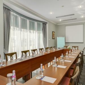 The business complex of the hotel includes 3 conference rooms with a capacity of 5 to 30 people. All halls are equipped with video and audio equipment and are perfect for events of various levels: business meetings, conferences, seminars. The organization of coffee breaks, cocktails, receptions is possible. The cost of renting conference rooms includes a flipchart, a screen, an Internet connection and pens.