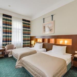 The hotel offers a fitness center with gym, swimming pool with jacuzzi, Turkish hamam, massage room and relaxation area with sun loungers. For guests of the Petr I hotel gym, Turkish bath and swimming pool is availiable.