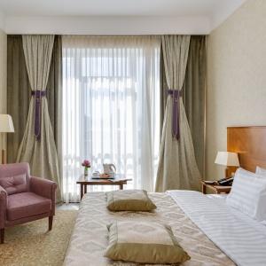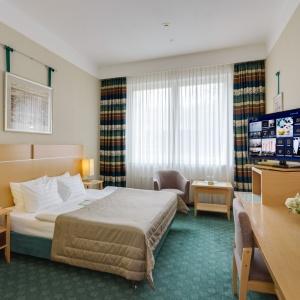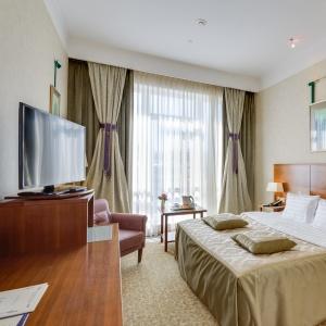 Hotel Peter I offers 133 rooms of various categories: from standard rooms to luxurious rooms on the Club floor with magnificent views on the center of Moscow and additional service. The hotel rooms have spacious bathrooms, telephones, multi-channel satellite TV, a workplace, minibars, safes, climate control system, Wi-Fi.