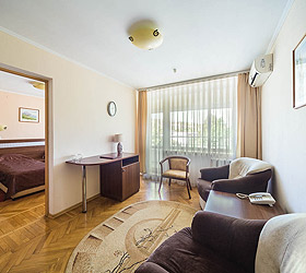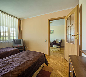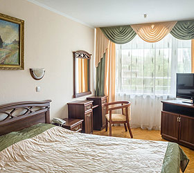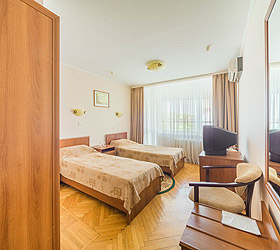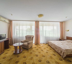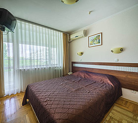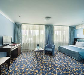 The Moskva Hotel has convenient traffic routes and it is located close to the Simferopol international airport, central railway station, and central bus station. The Hotel provides 190 comfortable rooms of various categories for accommodation - Economy, Standard, Business, Junior Suite, and Suite. A Standard room includes - air conditioning, TV, fridge, telephone, Wi-Fi Internet access, desk, hair-dryer, and set of toiletries.