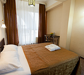 Valentin Hotel is located in the heart of resort-city of Sochi, close to its major sightseeing attractions. The hotel building, made of hi-tech materials, stands overlooking the Kurortny avenue, the sea-side development, the grand bridge and the mountain peaks. The hotel was established in 2001 and gained the reputation of a fine place to stay since then. Nowadays it offers accommodation in 27 rooms of various categories - Standard, Studio and Suite, each providing air conditioning, telephone, TV, fridge, hair-dryer and mini bar. The bathrooms are complete with all the necessary accessories. Suites additionally include - personal vault and Jacuzzi bathtubs. Guest can dine at the Indus Restaurant, located on the ground floor, serving delicious courses of European, Indian and Japanese cuisine in oriental Eastern atmosphere. Valentin Hotel provides an abundance of opportunities for conducting business events as well. Conferences, meetings and seminars can be successfully held at the state-of-the-art conference hall with 40 persons capacity. Coffee breaks are available for participants. Caring hotel staff does its best to meet all guests' demands concerning their stay. Among the Valentin Hotel services and facilities - porter service, taxi call, business centre services (fax, photocopy, Internet access), stand-alone fitness hall, day spa, Russian bath and Finnish sauna, swimming pool, dental office, secured parking, safety deposit boxes, ATM, massage rooms, beauty salon, guided tours, beach and many more.