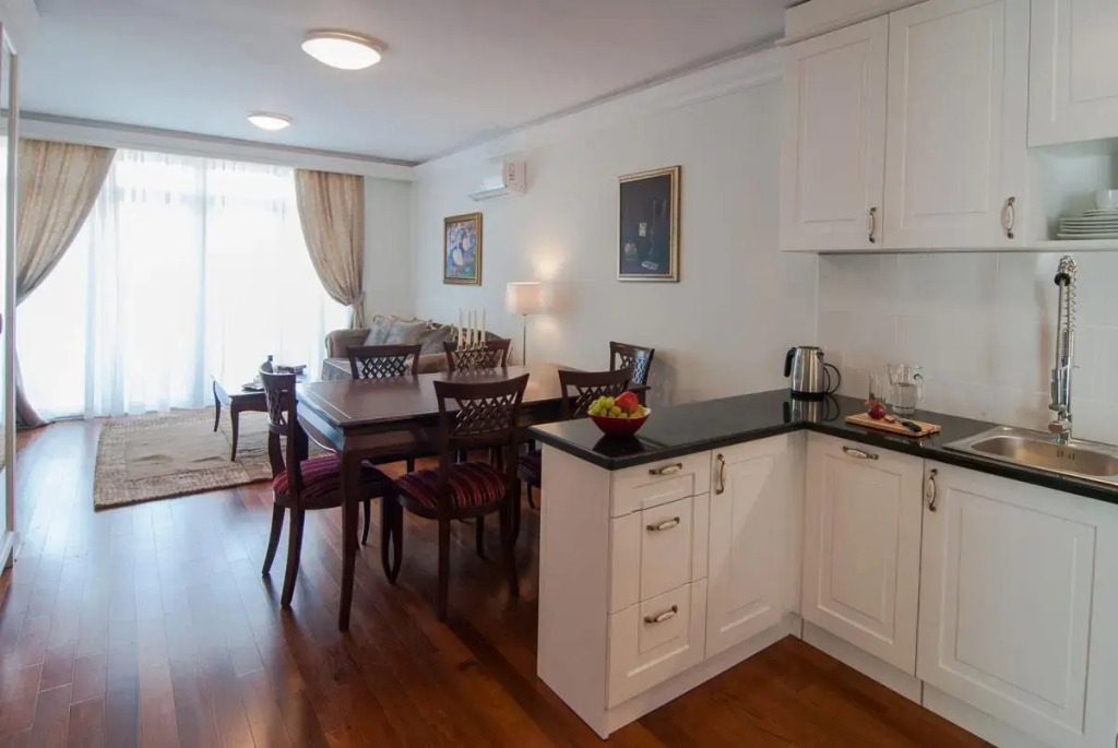 You can stop by the bar. Taste the local cuisine and have a rest in the restaurant. Free Wi-Fi on the territory will help you to stay on-line. Specially for tourists who travel by car, there’s a free parking zone..If you travel by car, there’s a parking zone. The following services are also available for the guests: a massage room, a sauna and a spa center. Guests who love doing sports will be able to enjoy a fitness center. Swimming fans are going to enjoy an indoor pool and an outdoor pool..There are playrooms for children at the apartment. They will be having so much fun that you might have to spend the evening with adults. You can take your pet with you for the journey. Pets are allowed. Accessibility: there is an elevator/lift. The staff of the apartment will be happy to talk to you in English and Spanish.