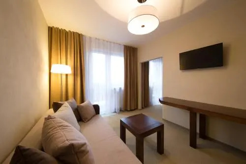 Spend an evening in a nice atmosphere of the bar. It’s time to have a nice meal! Stop by the restaurant. In the shared kitchen, you can cook anything you want. Want to be always on-line? Wi-Fi is available..If you travel by car, you can park in a parking zone for free. The beauty and wellness services: a massage room. The following services are available At the hotel for winter sports fans: a skiing area, a ski transfer and ski passes. You won’t be bored as at the hotel you will find a library, a ping-pong area, a picnic area and a barbeque area..Swimming fans are going to enjoy a pool. Children will be happy, there is a playroom for them. Want to have an excursion? Consult the tour assistance desk of the hotel. Take your pet with you. Pets are allowed..At the guests’ disposal, there’s also a laundry, private check-in and check-out, press and a safe-deposit box. The staff of the hotel speaks English, Spanish, German and Russian.