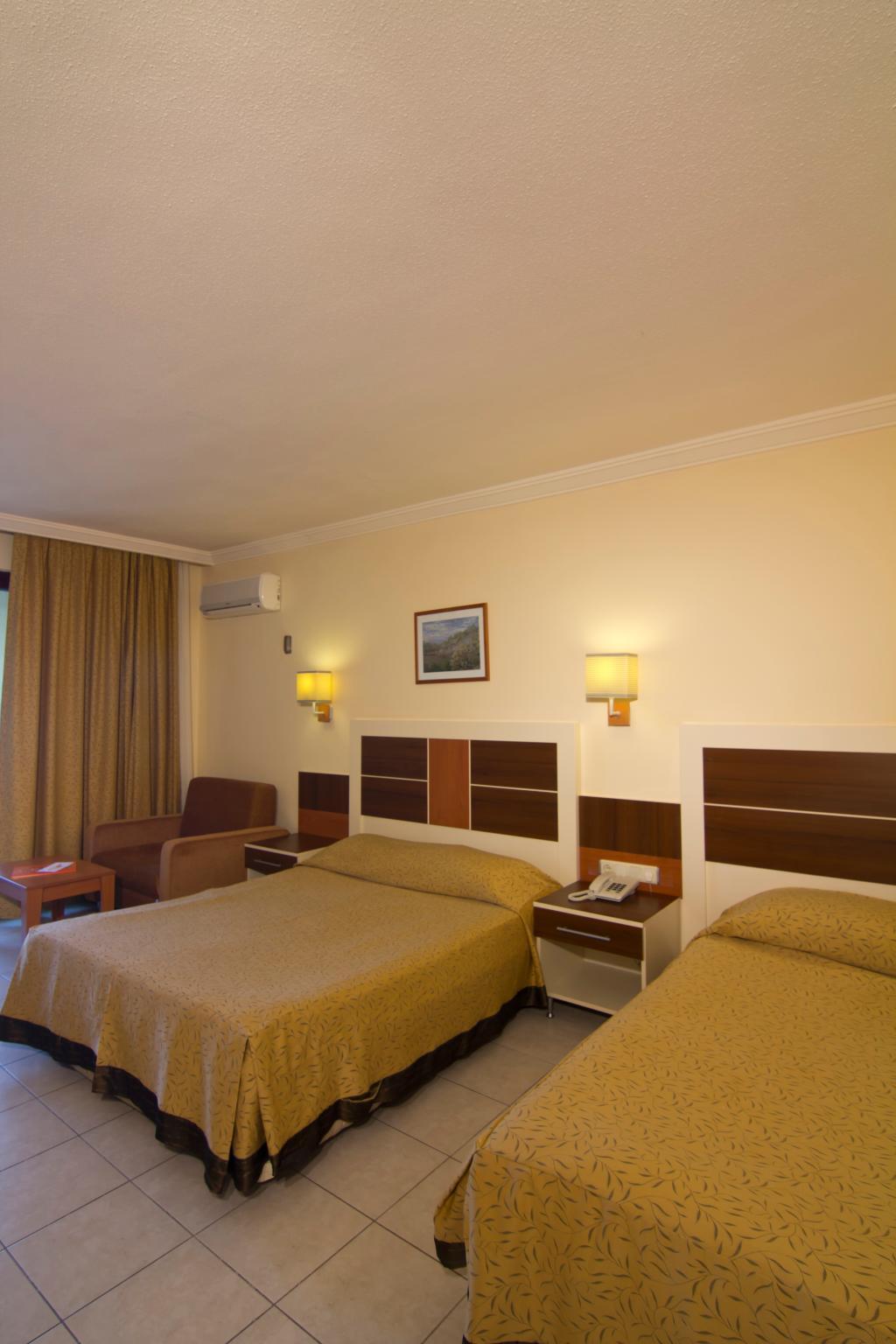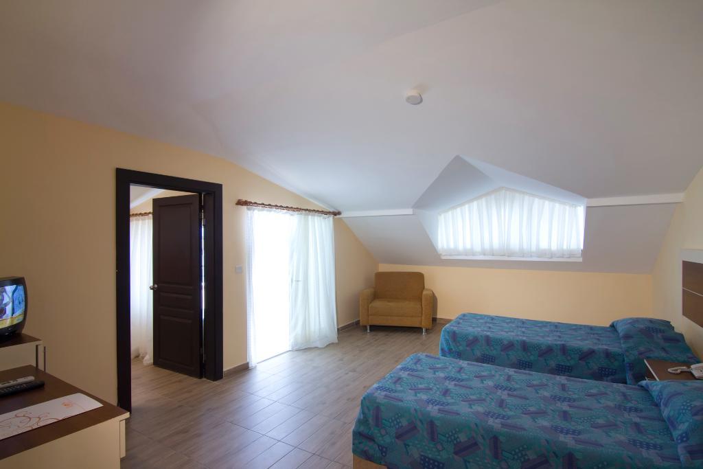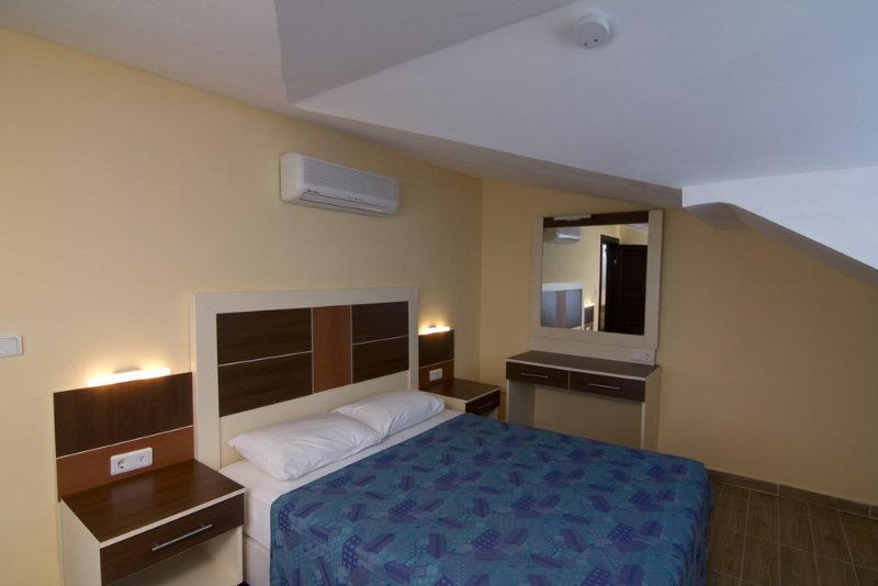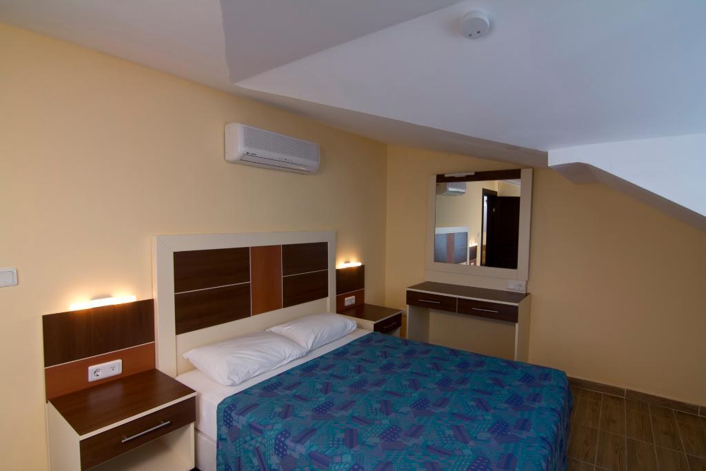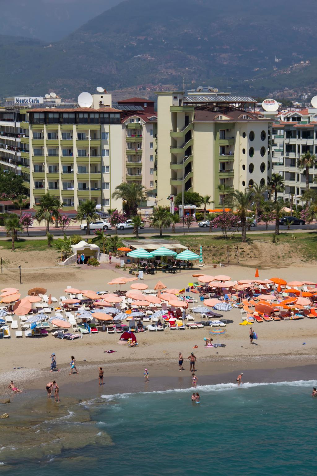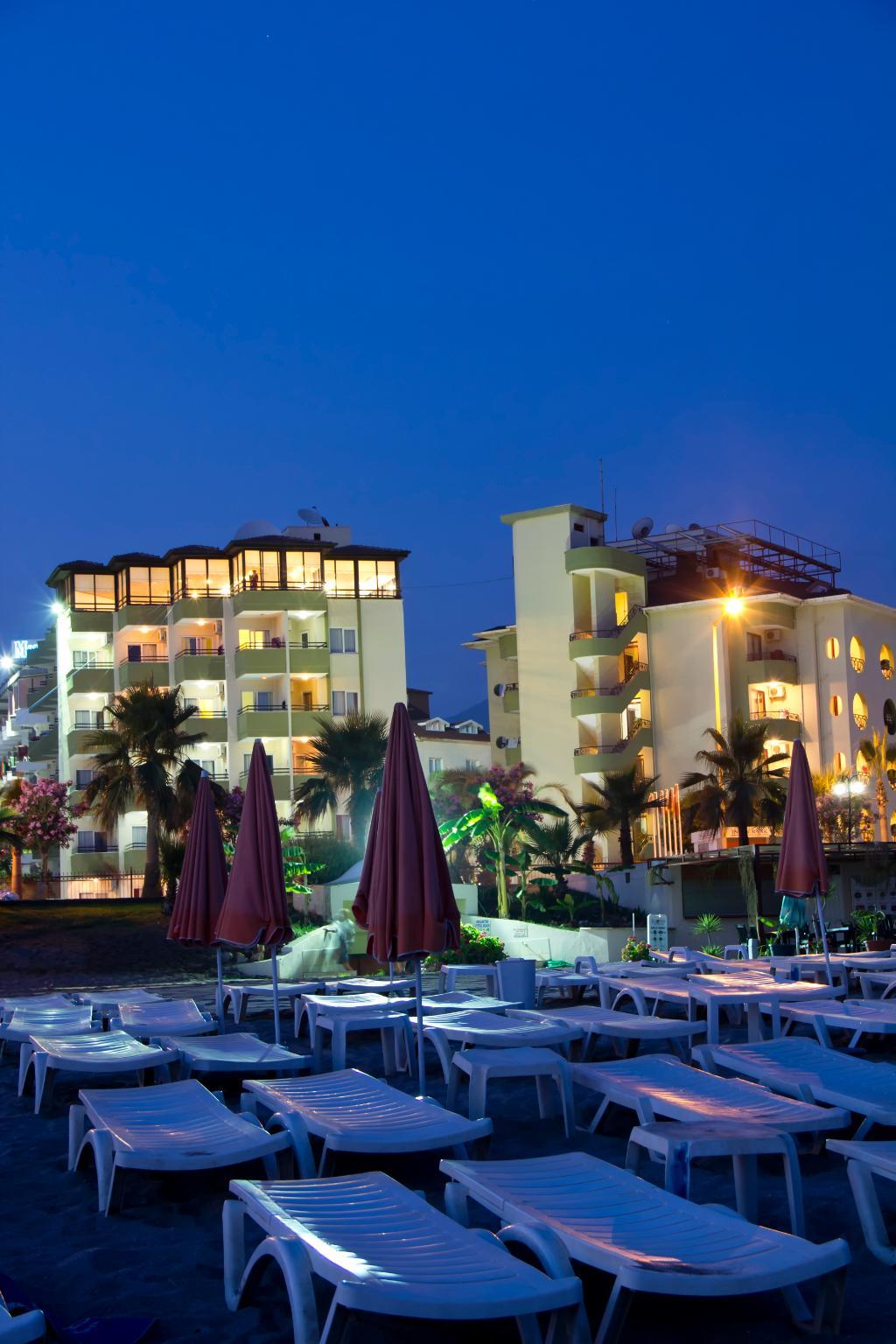 The hotel is located in the eastern district of Obagol, just 3.5 km from the centre of Alanya. The nearest sandy beach is only 50 m away and can be reached via an underpass. Shopping facilities and entertainment venues are located in the surrounding area with a wider choice in the resort centre. Transfer time to Antalya airport is approximately 2 hours by car. The hotel comprises of 213 rooms in three 5-storey buildings. A modern reception area with 24-hour service, lifts, and a hotel safe can be found in the main building along with a variety of facilities for young and old. In the outdoor complex guests will find three swimming pools with separate children's area, a poolside snack bar, and a sun terrace with sun loungers and parasols laid out to welcome sunbathers. Guests with an appetite for sport can enjoy a game of table tennis, beach volleyball, darts, or pool.