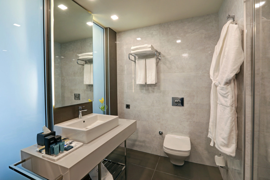 The room is warmly decorated and has everything you need to have a rest after a long eventful day. There is an alarm clock, a shower, a TV, a mini-bar, a bathrobe and slippers. The room equipment depends on its category.