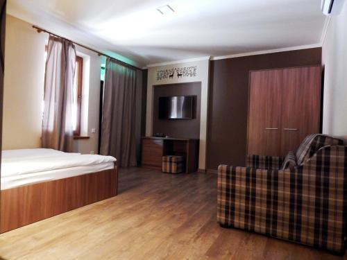 You can stop by the bar. You can stop by the restaurant. Have a cup of coffee in the cafe and, who knows, maybe it’s going to be the best one in the city. Wi-Fi on the territory will help you stay on-line..If you travel by car, there’s a free parking zone. Also, the following services are available for guests at the hotel: a sauna. Sports fans will be able to enjoy a table tennis area. You won’t be bored as at the hotel you will find a ping-pong area..Swimming fans are going to enjoy a pool and an outdoor pool. Children will be happy, there is a playroom for them. Additional services that the hotel offers to its guests: a laundry, dry cleaning, private check-in and check-out, ironing and a concierge. The staff of the hotel speaks Russian.