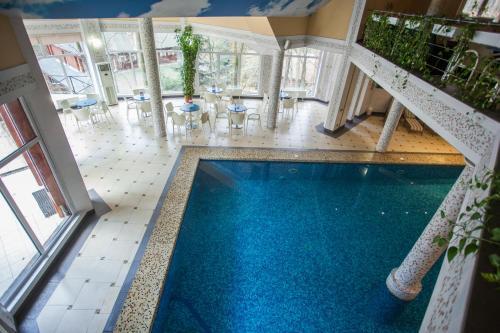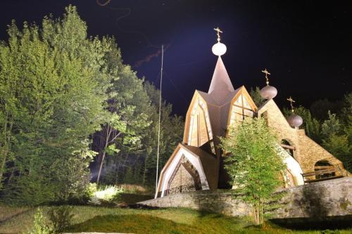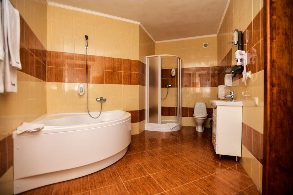 You can stop by the bar. Taste the local cuisine and have a rest in the restaurant. Free Wi-Fi is available on the territory. Ask for more information when checking in. If you travel by car, you can park in a parking zone for free..Specially for tourists who travel by car, there’s a parking zone. The beauty and wellness services: a massage room, a sauna and a spa center. Sports fans are going to love a fitness center, a gym and a mini-golf area. Ski and snowboard fans will enjoy a skiing area, ski facilities rental and ski passes..You won’t be bored as at the resort you will find a karaoke, a library, a ping-pong area and a barbeque area. Here, you can treat yourself with water procedures as there will be a pool, an indoor pool and an outdoor pool. For participants of business meetings, there is a conference hall. Children will be happy, there is a playroom for them..To book an excursion, consult the tour assistance desk of the resort. You can take your pet with you for the journey. Pets are allowed. The staff of the resort will order a transfer for you. Accessibility: there is an elevator/lift..Additional services that the resort offers to its guests: a laundry, an ATM, a chapel, private check-in and check-out, ironing and a safe-deposit box.