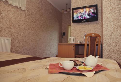 Here’s what you’ll find in the room to have a rest after a long day: a shower, a TV, a mini-bar and slippers. The room equipment depends on its category.