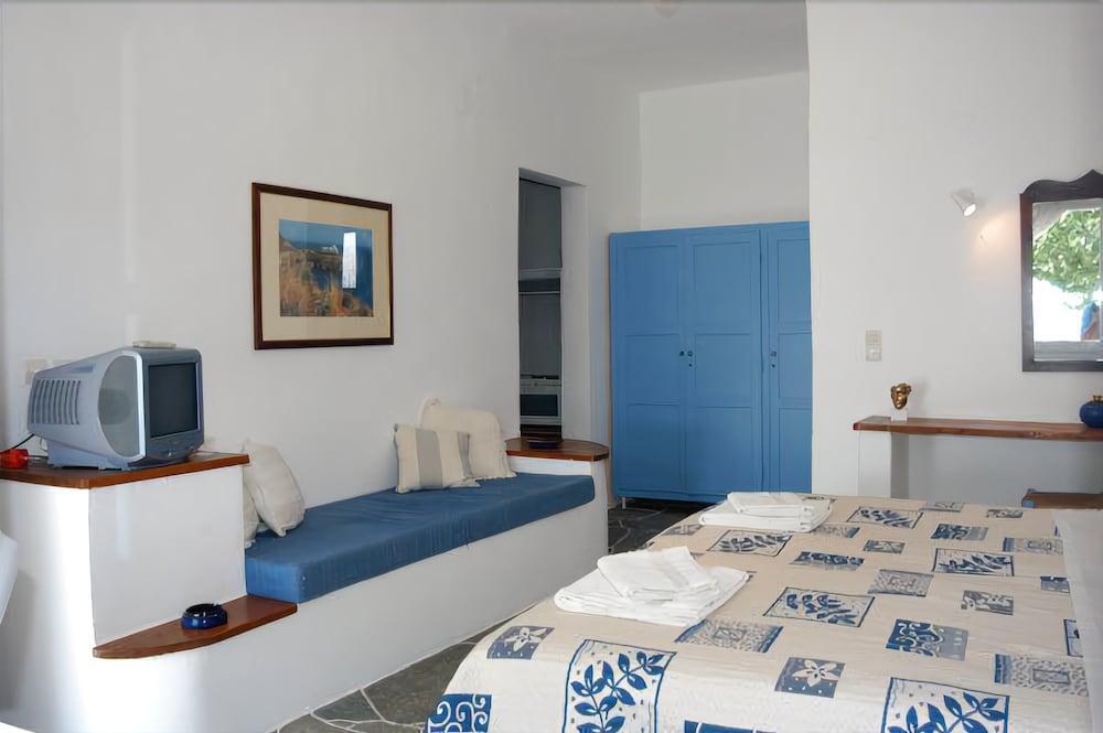 «Cape Napos» is located in Sifnos. This apartment hotel is located in 6 km from the city center. You can take a walk and explore the neighbourhood area of the apartment hotel — Chrissopigi Beach and Port of Parikia.