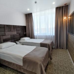 All rooms are complete with one or two beds, necessary furnishing, and bathrooms with toiletries. The hotel building includes a restaurant, where guests are offered continental breakfast in the morning.