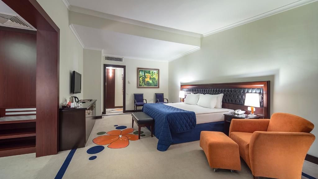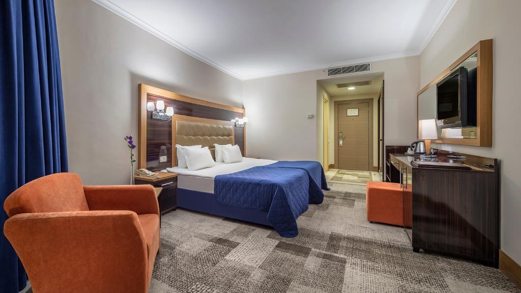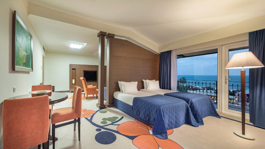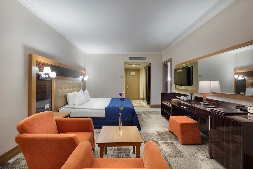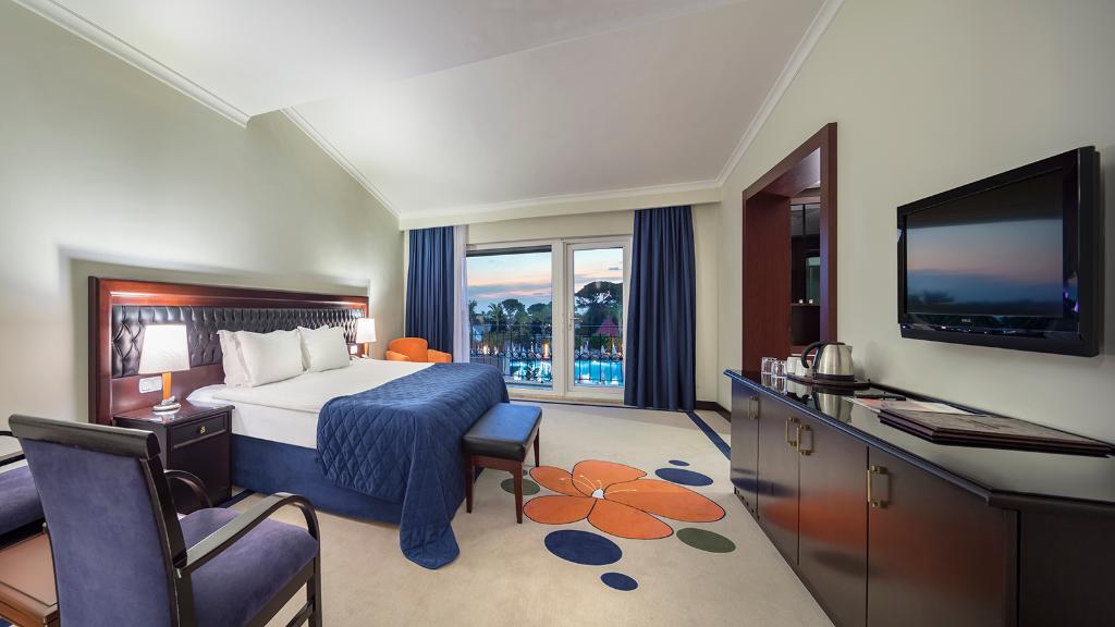 This luxurious beach resort boasts an enviable location in Belek. The complex is located directly beside a sand and shingle beach, affording guests the opportunity to enjoy a refreshing swim, leisurely strolls or to simply lie back and relish the stunning beauty of the surroundings from the azure blue sea to the golden sands of the beach. The vibrant heart of Belek lies just 4 kms away from the hotel, where guests can immerse themselves in the rich cultural heritage of the area. This exclusive hotel will leave guests breathless with the stunning architectural style which allures them into the elegant surroundings of the lobby. The lobby enjoys a sleek, attractive style with high ceilings giving the impression of expansive space. The guest rooms are luxuriously appointed, featuring rich Turkish influences in elements of the design.