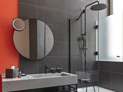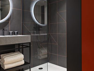 Jean-Philippe NUEL has designed the rooms and suites with a warm colorful decoration combining natural and raw materials. Each room and suite has a wall of red ochre wallpaper, with patterns half erased by time, reminding us that this place has a history.