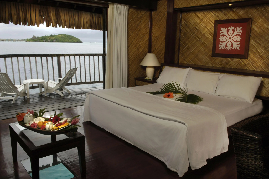 Отель Maitai Polynesia – это 74 номера и отдельных бунгало, часть из которых находятся прямо в голубой лагуне. Все номера и бунгало оформлены в традиционном полинезийском стиле с элементами декора и мебелью из местных натуральных материалов. Во всех из них есть принадлежности для приготовления чая и кофе, отдельная ванна со всеми косметическими средствами и феном, сейф, мини-бар, телевизор, балкон, а в бунгало на воде – стол с прозрачным дном, через который можно наблюдать за подводными жителями лагуны.