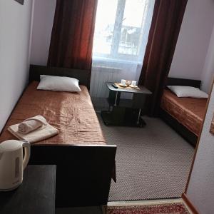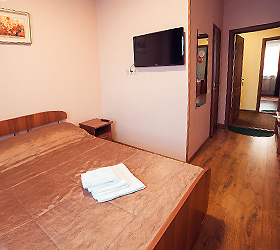 Mini-hotel Sever is located in the city of Abakan, on Askizskaya street, 248 A, 6 km from the city center. There is a well-developed infrastructure near the hotel, there is a canteen, a discounter Khoroshy, a supermarket Femeli, a pharmacy, an ATM, a public transport stop. Nearby there is the park Baranka - 3.4 km, the zoo Center of Living Nature - 6.2 km, the national museum of local history - 9.5 km. The distance to the railway station is 7.2 km, to the international airport Abakan"- 10.5 km. If guests are traveling by car, the mini-hotel provides parking. The reception and accommodation desk is open 24/7. Guests are registered on the basis of an identity document (over 14 years old - a passport of a citizen of the Russian Federation, under 14 years old - a birth certificate). The hotel also has an express check-in/check-out service.