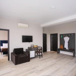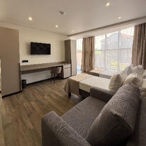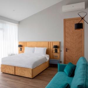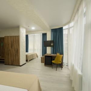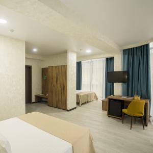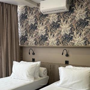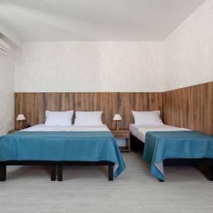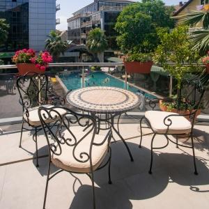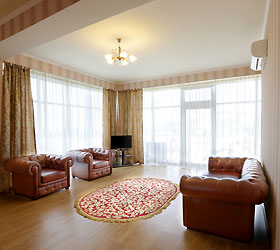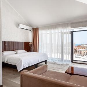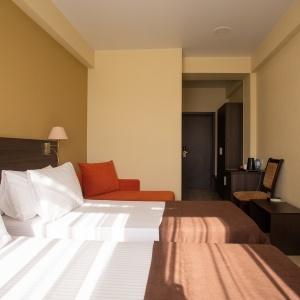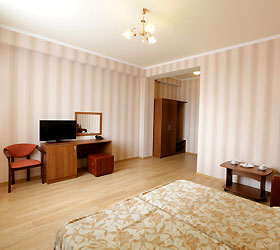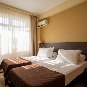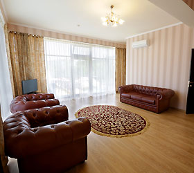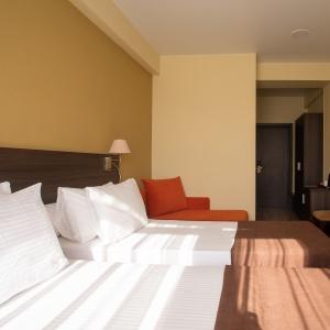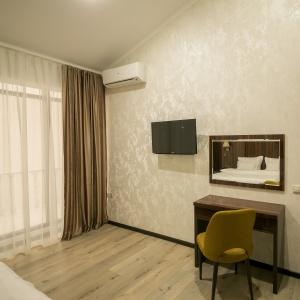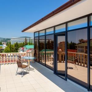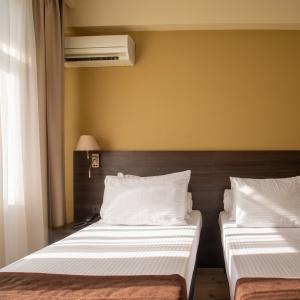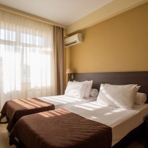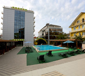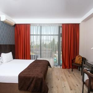 The hotel offers 145 rooms. Two modern buildings have rooms of Standard, Suite, Studio, Studio Suite and Apartmant (penthouse) categories. The rooms offer modern amenities - TV with remote control, full furnishing, telephone, fridge, wall split air conditioner, shower. The rooms of building "B" have kitchen areas, which contributes to long-term family holidays. Each room is provisioned with an information leaflet that contains the necessary phone numbers (including taxi call and room-service), restaurant menu and full description of additional services. Among the latter there are - swimming pool attendance, beach utensils upon request, paddle tennis, Wi-Fi Internet, transfer service and many more.