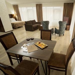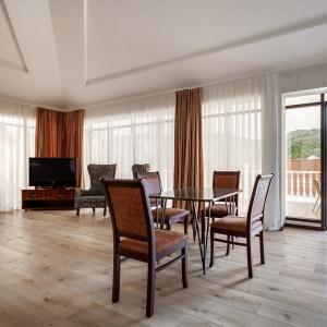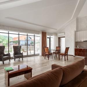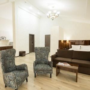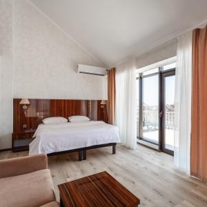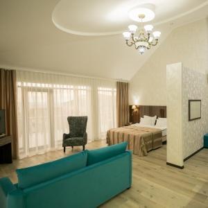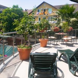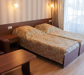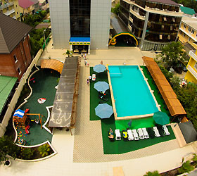 The hotel complex includes car parking, kids' playground, outdoor swimming pool (14 x 8 meters) with paddling pool, lobby bar, summer grill cafe, Russian bath, massage room and billiards. Quality service and caring staff will ensure a wonderful vacation. The hotel prioritizes the guests' safety. It has security and fire-fighting alarm systems, 24-hour video monitoring, safety deposit boxes for valuables, key card access systems.