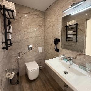Ecodom Adler is set in the Adler seaside close to the Kurortny Gorodok (resort district). The distance to the sea is 200 meters. The municipal shingle beach with its shopping pavilions and cozy cafes is at the guests' disposal. The hotel surroundings also include various shops, where groceries, beach utensils and souvenirs can be bought. Also nearby is the water park of the Vesna pension.