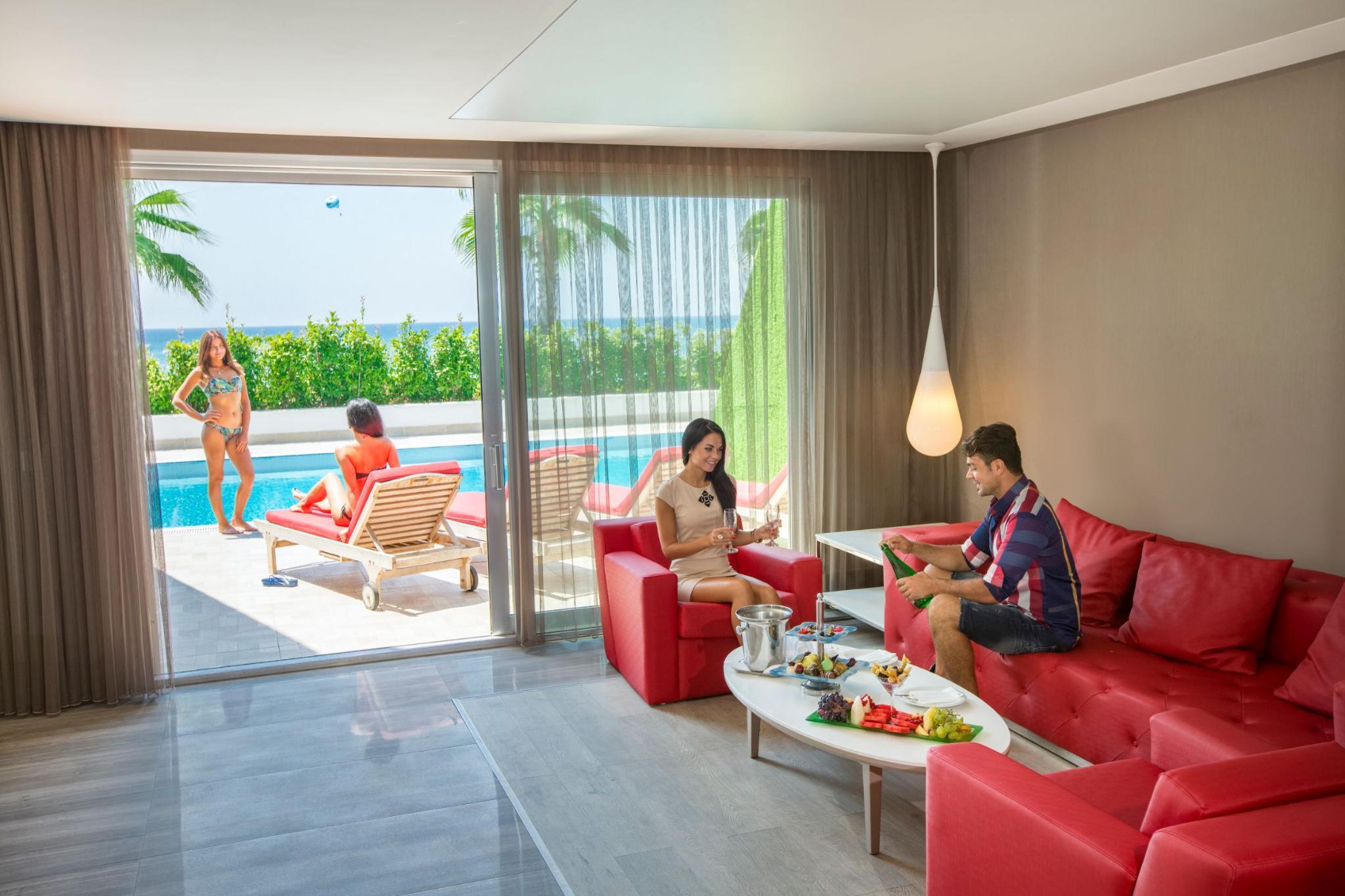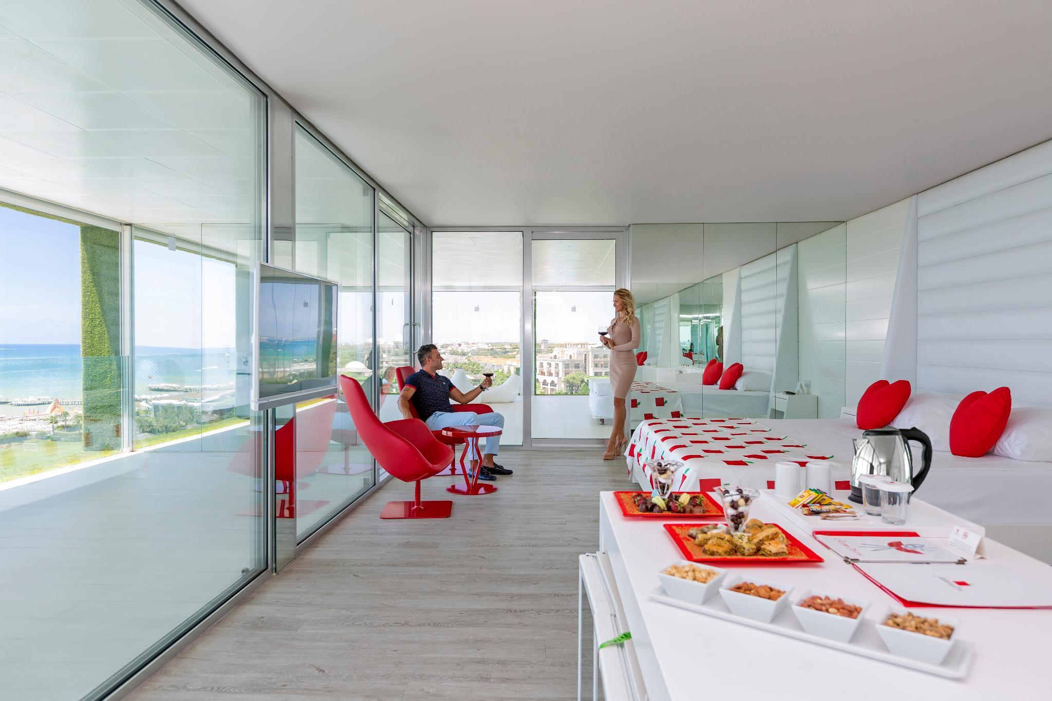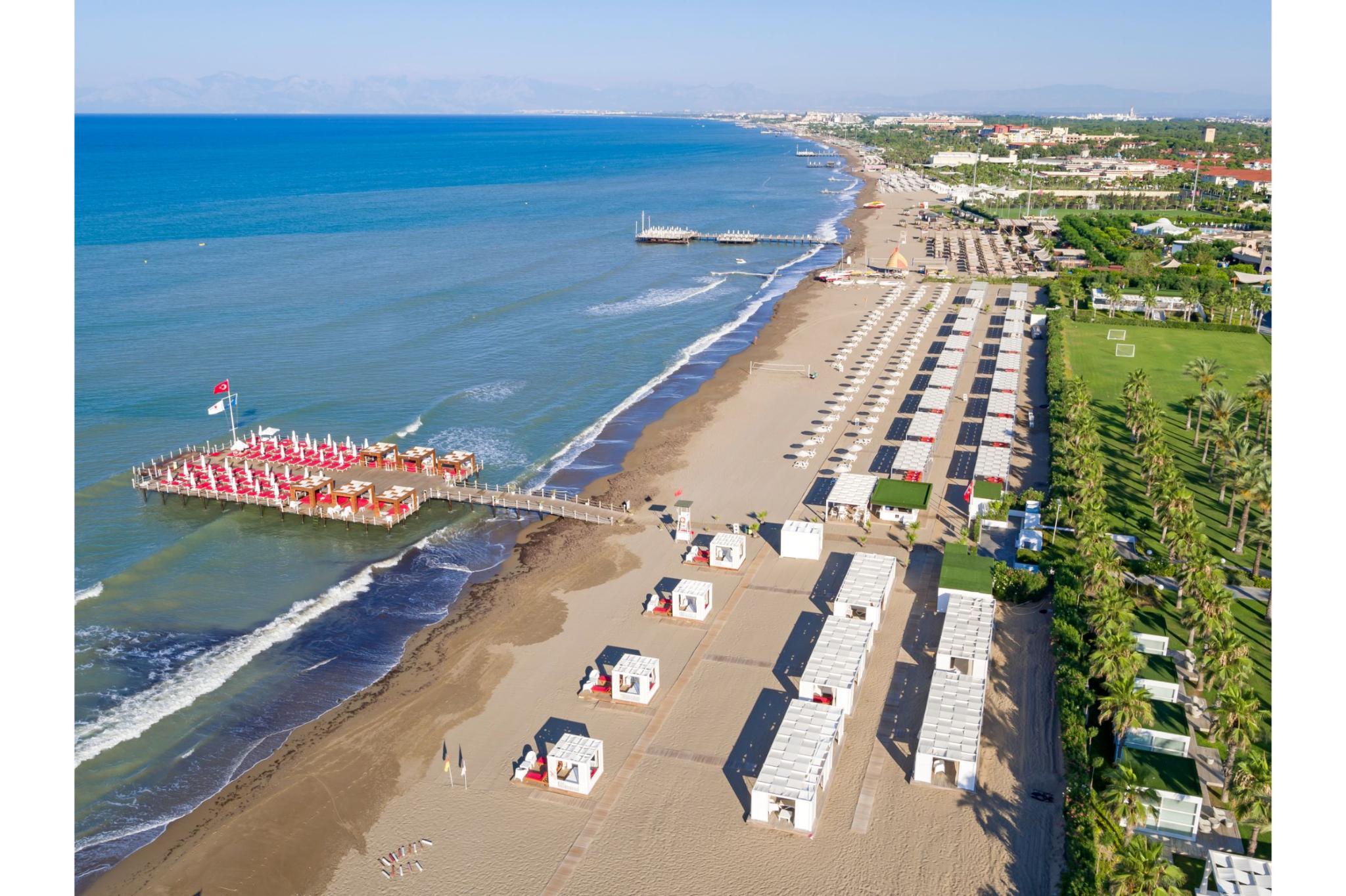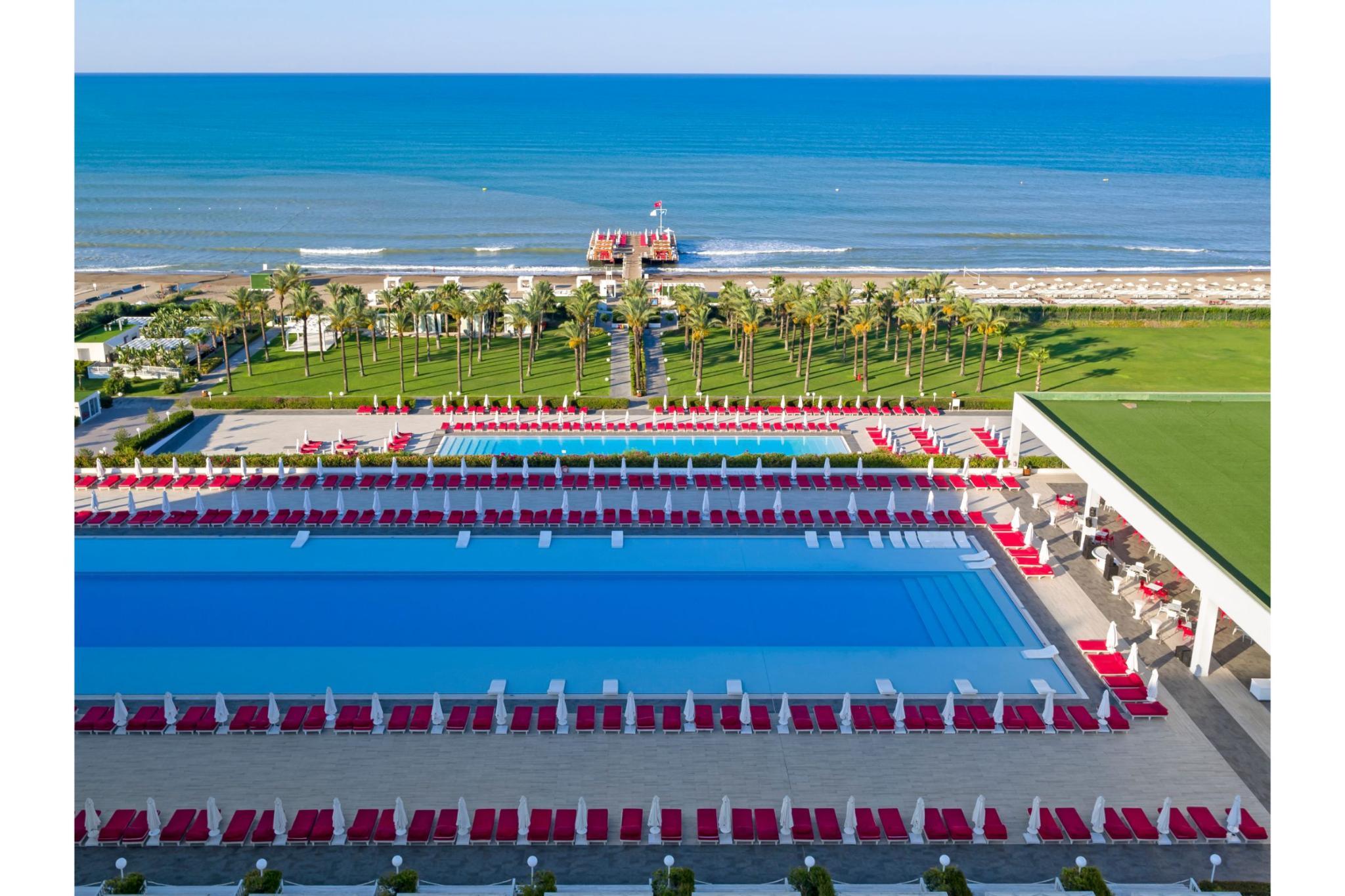 Обладатель многочисленных наград, необыкновенно роскошный дизайн-отель Royal Adam and Eve стоит в окружении сосновых деревьев и превосходно расположен на казалось бы бесконечном песчаном пляже области Белек. От отеля можно легко добраться до многих гольф-полей класса "премиум". Центр Белека с его магазинами, ресторанами, барами и кафе находится в шаговой доступности. Отель предлагает размещение в модных ультра-шик номерах в белом минималистском стиле: как в дизайн-номерах в главном здании так и на эксклюзивных виллах. К услугам гостей в отеле есть несколько бассейнов, в том числе огромный открытый бассейн, превышающий более чем вдвое длину олимпийского бассейна, с водными горками. В яблоневом саду, украшенном почти 5 миллионами маленьких зеркал, расположились несколько ресторанов, а также бар Bluetooth с уникальной барной стойкой длиной 96 метров. Гастрономическое предложение также включает в себя Blind restaurant (Слепой ресторан). Гости могут насладиться полной релаксацией в великолепном спа-центре. Этот необычный отель действительно является кусочком рая на земле.